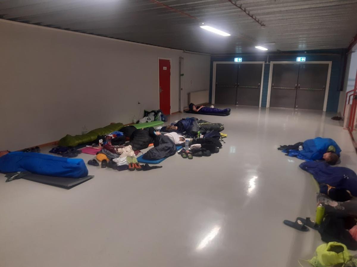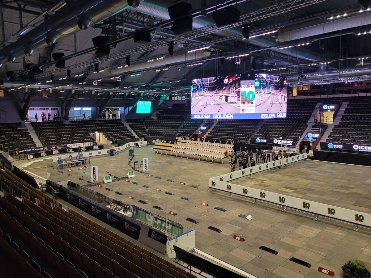 Na Tiomilu jsme vyrazili do hokejové arény v Skellefteå. Zázemí bylo perfektní, uvnitř v hokejové hale, kde byli jak jednotlivé předávky, start, cíl, tak i možnost sledování průběhu závodu na kostce či na obrazovkách na chodbách.  Parkovalo se poblíž, měli jsme zarezervováno 20 sedaček v aréně, spalo se buď na chodbě, v autě či venku.