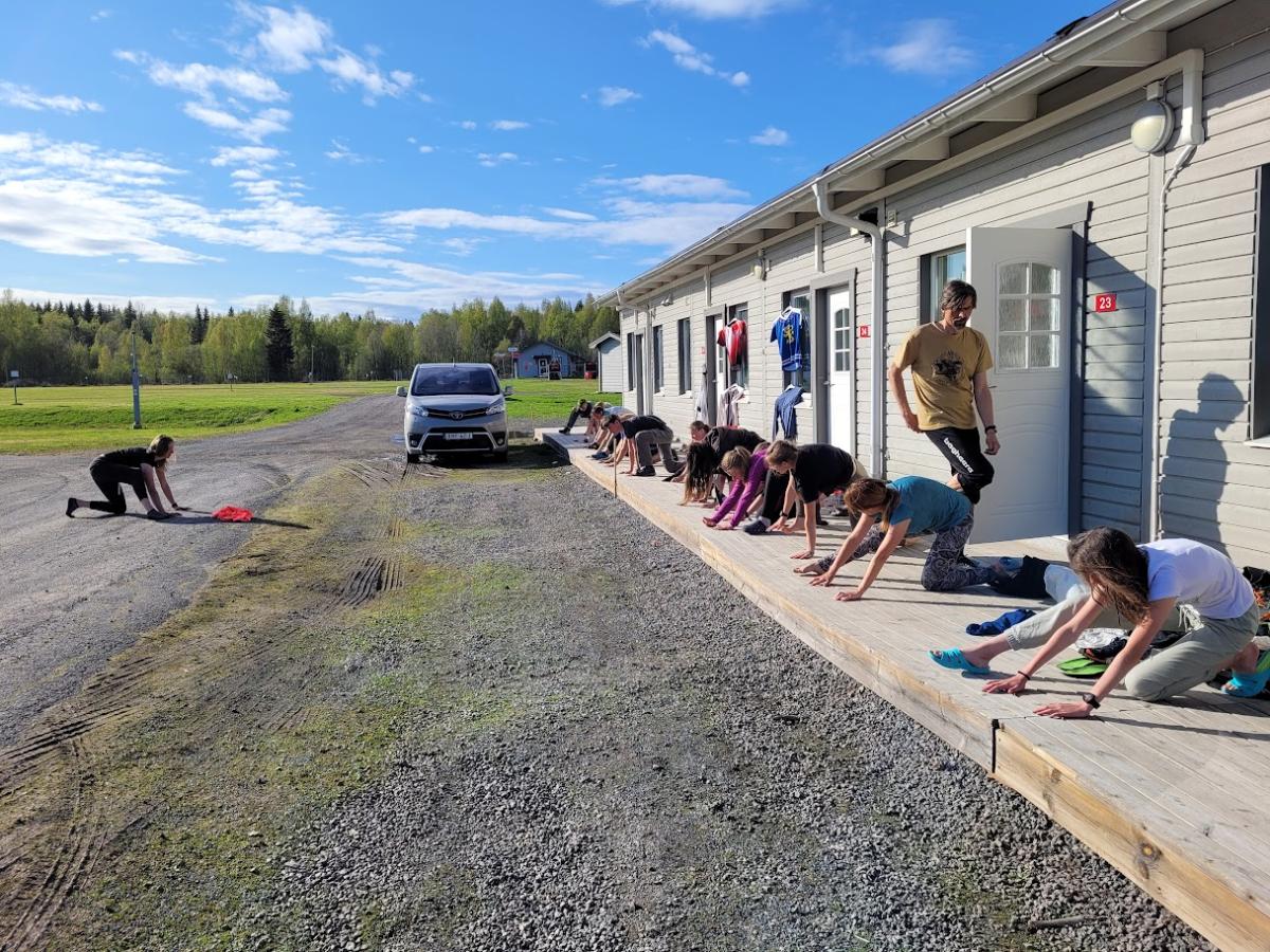 Po ranním běhu, rozcvičení a dýchacím cvičení od Wima Hofa nás čekal výletový den. Mířili jsme překročit polární kruh a navštívit divoké kaňony v národním parku Muddus. Kruh jsme překročili, nakoupili zásoby v městečku Jokkmokk za ním, ale po 2 hodinách a 20 minutách jsme na prašné cestě několik kilometrů od NP Muddus narazili na zavřenou závoru kvůli zhoršenému stavu cesty. Nezbývalo než vymyslet jiný stejně tak hezký výlet. A tak jsme zamířili ještě další hodinu na sever do oblasti těžby železné rudy k druhému nejsevernějšímu významnému švédskému městu Gällivare do lyžařského centra Dundret.