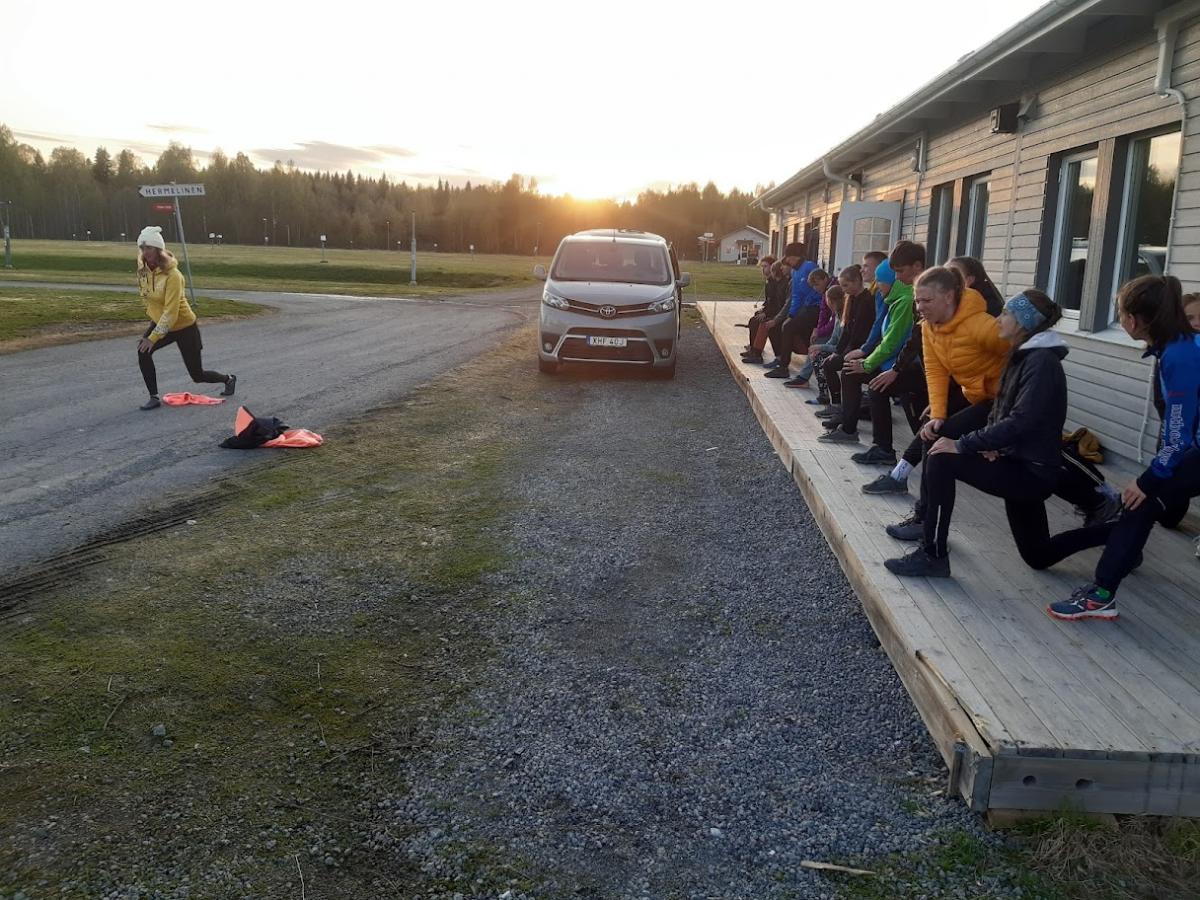 První fází byly půlčíkové štafetky v rychlém vrstevnicově zajímavém lese v lesích za Alvsbynem. Jaro a zvýšená hladina jezera i přilehlých přítoků byla znát i na této mapě, hlavně při překonávání potoku na warm-up linii. Následovala krátká rozcvička spojená s lehkým seznamovákem účastníků, aby po devíti dnech znali navzájem svá jména. Rozdělení do vyrovnaných dvojic a odstartování velmi rychlých kontaktních lehce farstovaných štafetek. Ideální chytnout správné tempo před závodním víkendem.