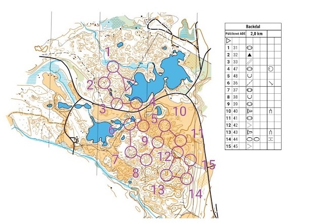 Na druhý trénink jsme jeli ještě hlouběji do místních hvozdů na pěknou mapu s jezerem a pár skalnatými vyvýšeninami. Byly připravené tři okruhy (paměťák, překreslovačka a plná mapa se zakreslováním attackpointů), vše v pohodovém tempu, čistě mapové tréninky pro zlepšení techniky, konkrétně tvorby plánu, výběru správných záchytných bodů.